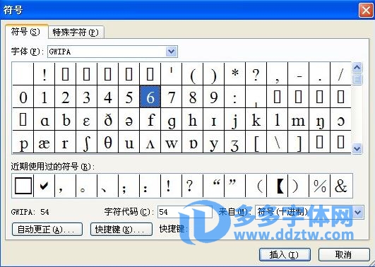下载gwipa.ttf,打开点击安装,进入word,需要输入音标时,可在“插入”菜单下选择“符号”,在“符号”选项卡下“字体”下拉菜单中选择“gwipa”,这是你会看到国际音标中的符号出现在屏幕上,选择你所需要的音标双击之即插入到文章中。