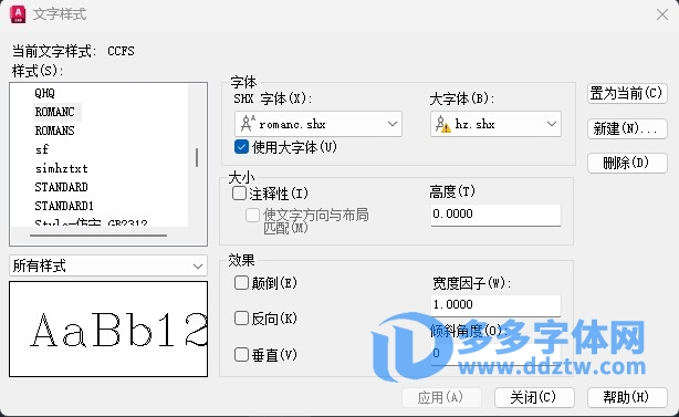 HZ.shx – 大字体(B),字体,如下图