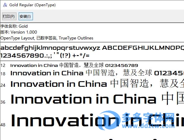 Gold Regular.ttf = Gold.ttf字体效果,如下图