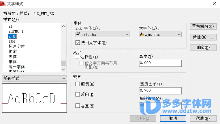 zjm.shx – 大字体(B)字体,如下图
