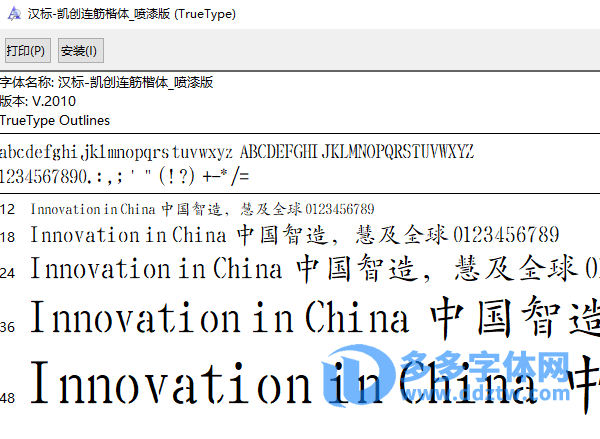 汉标-凯创连筋楷体_喷漆版.ttf字体,如下图