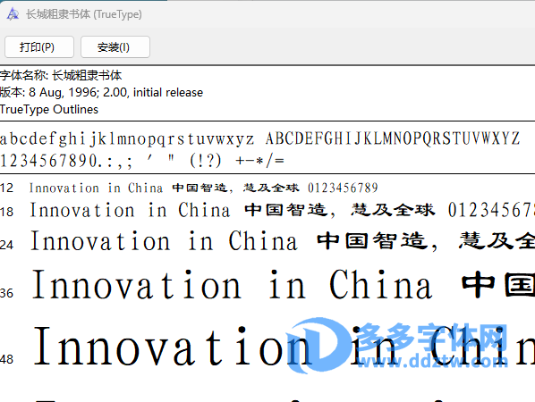 长城粗隶书体.ttf字体,如下图(说明此字体兼容性差ps测试)