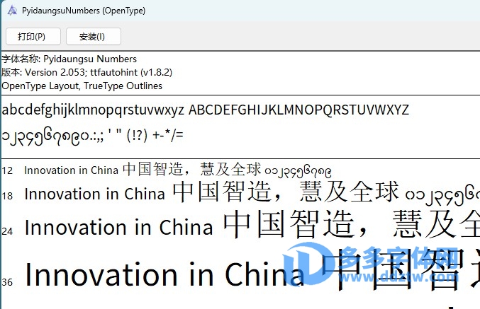 字体名称:PyidaungsuNumbers