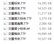文星字体8款文星书宋.TTF+文星仿宋.TTF+文星标宋.TTF+文星楷体.TTF+文星简大标宋.TTF+文星简小标宋.ttf+文星简美黑.TTF+文星黑体.TTF文星字体下载安装电脑系统字体 – 多多字体网