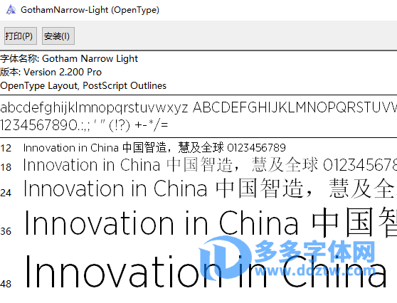 Gotham Narrow Light.otf = GothamNarrow-Light.otf字体,如下图