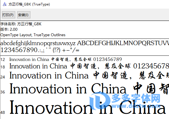 方正行楷_GBK v2.0.ttf字体,如下图