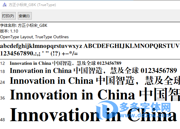 方正小标宋_GBK v1.10.TTF字体,如下图