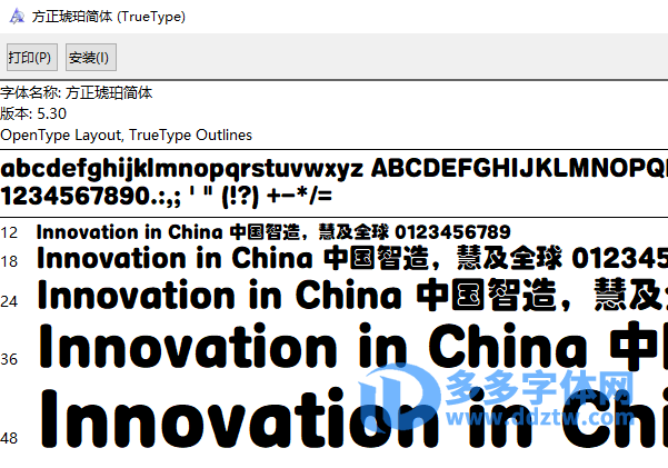 方正琥珀简体v5.30=FZHPJW–GB1-0=FZHuPo-M04S.TTF字体,如下图