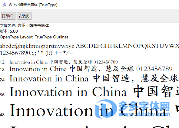 方正北魏楷书简体.TTF=FZBeiWeiKaiShu-S19S.ttf=FZBWKSJW–GB1-0.ttf字体,如下图