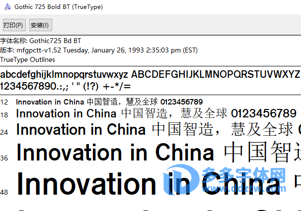 Gothic725 Bd BT.ttf=Gothic 725 Bold BT.ttf字体,如下图