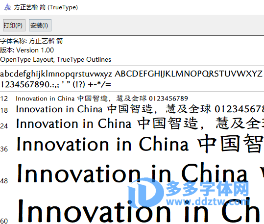 方正艺楷 简.ttf=FZYiKaiS.ttf=FZYIKS–GB1-0.ttf字体,如下图