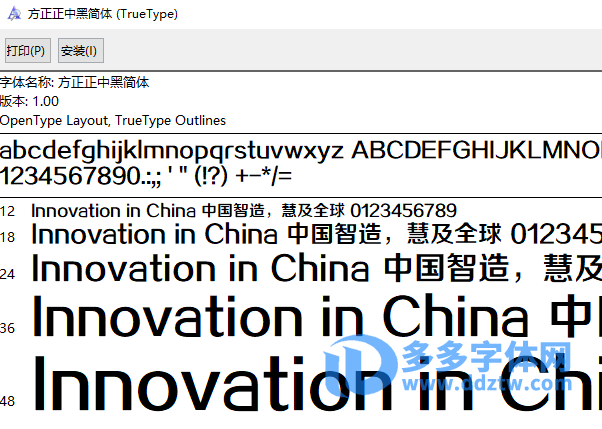 方正正中黑简体.TTF=FZZhengHeiS-DB-GB.ttf=FZZZHONGJW–GB1-0.ttf字体,如下图