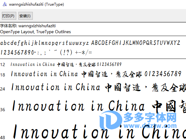 王羲之书法字体.ttf=wanngxizhishufaziti.ttf字体,如下图