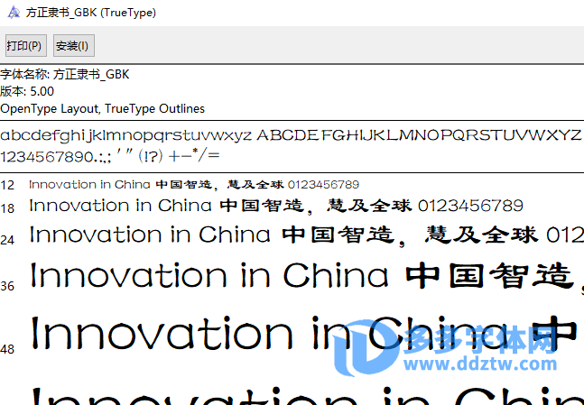 方正隶书_GBK=FZLiShu-S01=FZLSK–GBK1-0.ttf字体,如下图